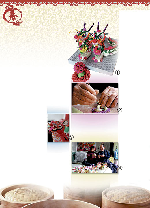 圖①:雙龍戲珠面花。 圖②:用竹棍制作面花。 圖③:老虎面花。 圖④:王民政和老伴田粉芹在家里制作面花。 本報記者 姜 峰攝 陜 西 走親戚送花饃 本報記者 姜 峰 臘月里,陜西省黃陵縣處處洋溢著過年的氣氛。 在黃帝陵旁、地處橋山腳下的石山村,74…[詳細]