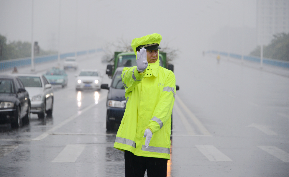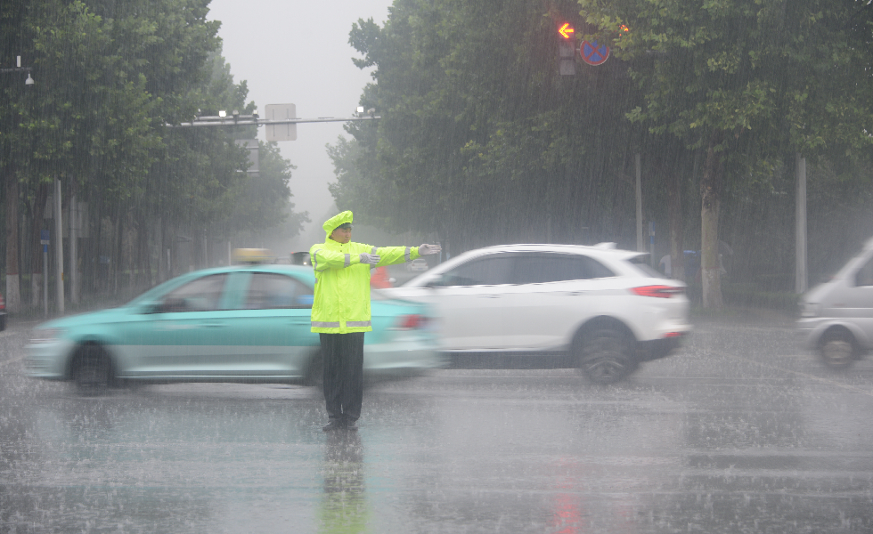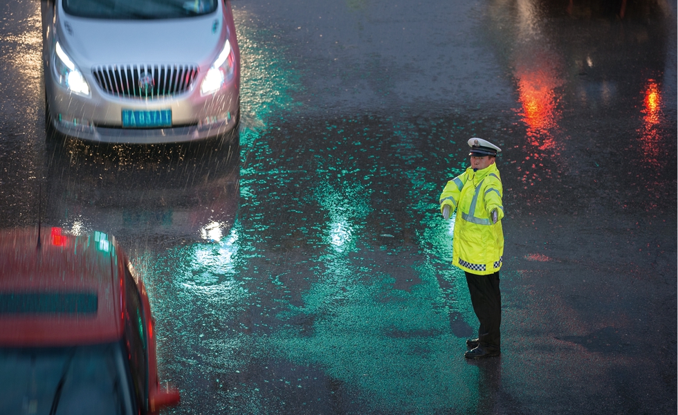 雨中堅(jiān)守 守護(hù)百姓出行安全/
