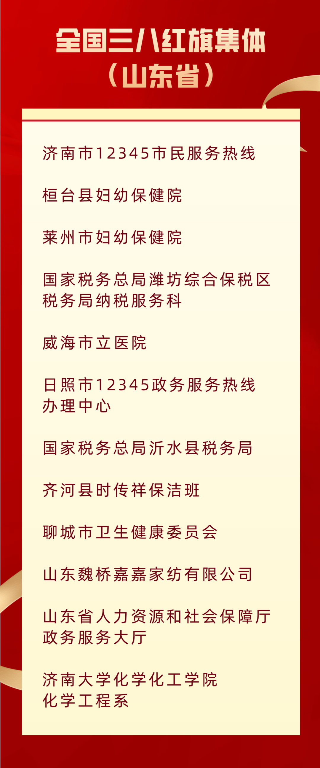 2月28日,全國婦聯(lián)在京舉行紀(jì)念“三八”國際婦女節(jié)暨表彰大會(huì),隆重表彰2024年度全國三八紅旗手、全國三八紅旗集體、全國巾幗文明崗。山東省21名個(gè)人、41個(gè)單位光榮上榜。