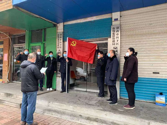 每名黨員就是一面旗幟,每個支部都是一座堡壘。自疫情開始以來,在山東濟南歷下區(qū)的大街小巷、樓宇企業(yè)、門店市場,處處可見佩戴黨徽、肩扛紅盾的市場監(jiān)管衛(wèi)士。