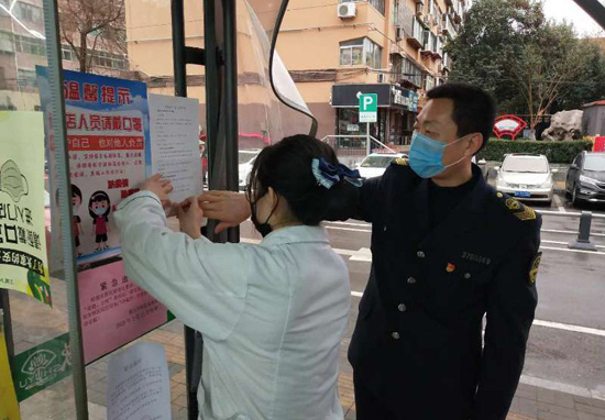 他們戴著簡易防護口罩,為了群眾的安全和健康,奔波在戰(zhàn)“疫”一線。