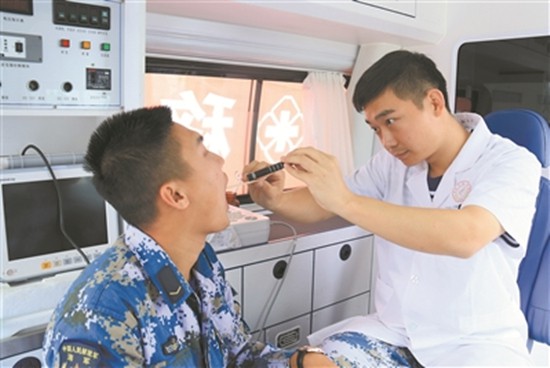 值班醫(yī)生為戰(zhàn)士做檢查。秦雪峰攝