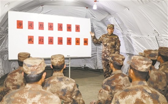 “70年前,和志愿軍烈士馬世賢一同走上抗美援朝戰(zhàn)場的英雄們,在裝備差距極為懸殊,條件極為艱苦的背景下,英勇作戰(zhàn)奮勇殺敵。新時代的我們,不僅要傳承先烈英勇的戰(zhàn)斗意志,更要在沙場上書寫屬于我們的時代答卷。”連日來,第79集團軍某旅在演練間隙,組織官兵圍繞“如何傳承英烈戰(zhàn)斗精神,爭當英雄傳人”進行討論辨析。該旅還指派專人與烈士馬世賢親屬、某邊防旅及孟津縣人武部建立聯(lián)系,充分挖掘烈士馬世賢的英勇事跡,并組織巡回宣講,激發(fā)官兵練兵熱情。