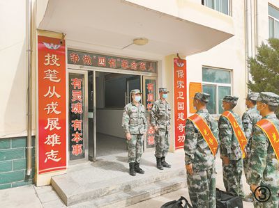 新兵到來(lái)之前,陳強(qiáng)強(qiáng)自己動(dòng)手,將“沒(méi)有克服不了的困難,沒(méi)有完不成的任務(wù),沒(méi)有戰(zhàn)勝不了的敵人”這一“旅魂”做成剪紙,貼在了新兵宿舍墻上。他還收集整理出一本英模人物故事集!吧厦娑际俏覀儐挝粴v史上的真人真事,新兵們一來(lái),就講給他們聽(tīng)。”多年帶兵經(jīng)驗(yàn)告訴陳強(qiáng)強(qiáng),鑄魂育人是新兵班長(zhǎng)最重要的一項(xiàng)工作。