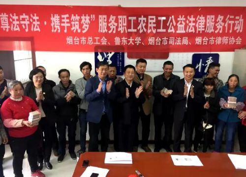煙臺市總工會“尊法守法 攜手筑夢”服務(wù)農(nóng)民工公益法律服務(wù)隊(duì)成立于2017年,隊(duì)長由“全國優(yōu)秀律師”、“全國維護(hù)職工權(quán)益杰出律師”、山東第一屆“十大法治人物”、山東三和德通律師事務(wù)所主任楊希勇?lián)。服?wù)隊(duì)成立以來,以“建功煙臺·工會在行動”為載體,以維護(hù)農(nóng)民工合法權(quán)益為目標(biāo),積極參與“尊法守法·攜手筑夢”服務(wù)農(nóng)民工公益法律行動,有效維護(hù)了農(nóng)民工的合法權(quán)益。