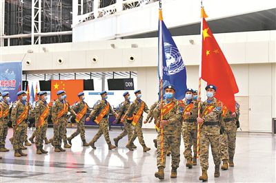 中國第7批赴南蘇丹(朱巴)維和步兵營第一梯隊出征儀式現(xiàn)場。姜慧鑫 攝