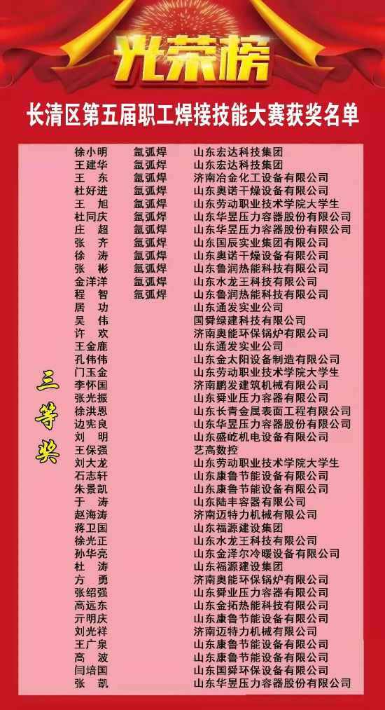 本屆大賽成功舉辦,有效發(fā)揮了“以賽促學、以賽促訓”的引領示范作用,也是“師傅帶徒弟”活動的另一個體現(xiàn),為我區(qū)焊接技能人才提供了互學互鑒、技能交流的良好平臺,進一步展示長清廣大職工“聚焦新動能,競賽促發(fā)展”的信心和決心,在全區(qū)營造了“尊重勞動、尊重知識、尊重人才、尊重創(chuàng)造”的良好氛圍。