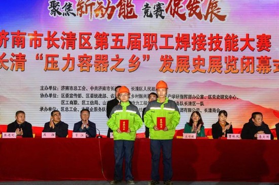 為期兩天的長清區(qū)第五屆職工焊接技能大賽暨長清“壓力容器之鄉(xiāng)”發(fā)展史展覽落下帷幕,11月27日下午舉行頒獎儀式。區(qū)委副書記王友進,省財政廳二級調(diào)研員、省派鄉(xiāng)村振興服務隊隊長邱劍鋒,市總工會一級調(diào)研員、市民企服務隊長清區(qū)三隊隊長常江,區(qū)總工會主席宋傳娥、副主席李愛國、副調(diào)研員房田力,區(qū)人社局副局長曹林鳳,產(chǎn)學研辦公室副主任周勝,區(qū)“兩新”組織工委副處級領導干部李開軍,宏達公司總經(jīng)理張德利,長清商會會長張士森等領導以及有關工會干部、參賽選手出席頒獎儀式。