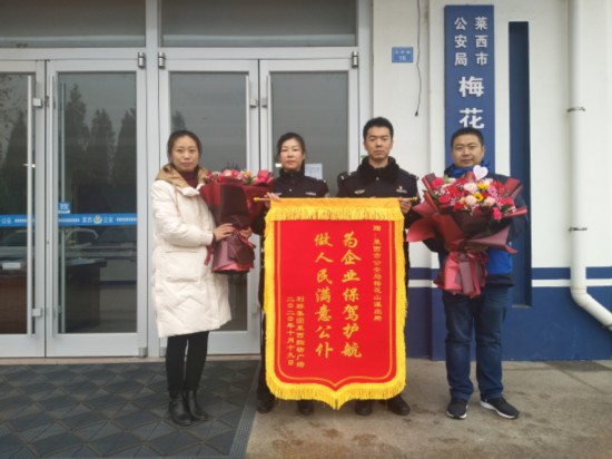 人民網(wǎng)青島12月10日電 近日,山東青島萊西市公安局梅花山派出所連續(xù)收到轄區(qū)多家企業(yè)贈(zèng)送的錦旗,對(duì)公安機(jī)關(guān)護(hù)航和服務(wù)企業(yè)發(fā)展、特別是出臺(tái)服務(wù)發(fā)展30條“硬核”措施,打造最優(yōu)營商環(huán)境的舉措表示感謝。
