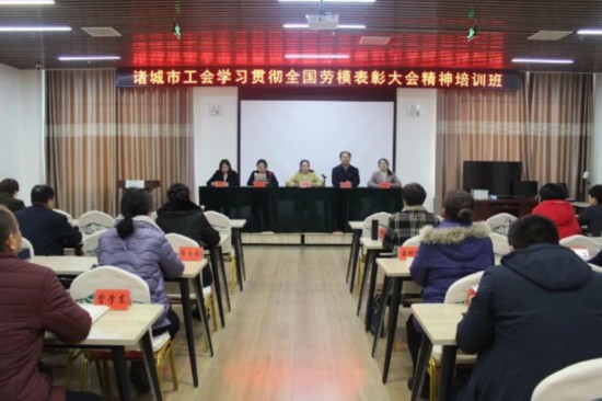 人民網(wǎng)濰坊12月22日電 為進(jìn)一步弘揚(yáng)勞模精神、勞動(dòng)精神、工匠精神,12月10日至11日,諸城市總工會(huì)舉辦學(xué)習(xí)貫徹全國(guó)勞模表彰大會(huì)精神培訓(xùn)班。中共諸城市委常委、宣傳部部長(zhǎng),市總工會(huì)主席趙莉出席開班儀式并講話。來自全市農(nóng)業(yè)、工業(yè)、科技、衛(wèi)生、教育等領(lǐng)域的四十余名各級(jí)勞動(dòng)模范和先進(jìn)工作者代表參加了培訓(xùn)。