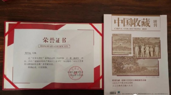 同年10月,《一帶一路》硯雕入展中國工藝美術(shù)協(xié)會組織的100名國家級大師全國展“中華大師匯”。