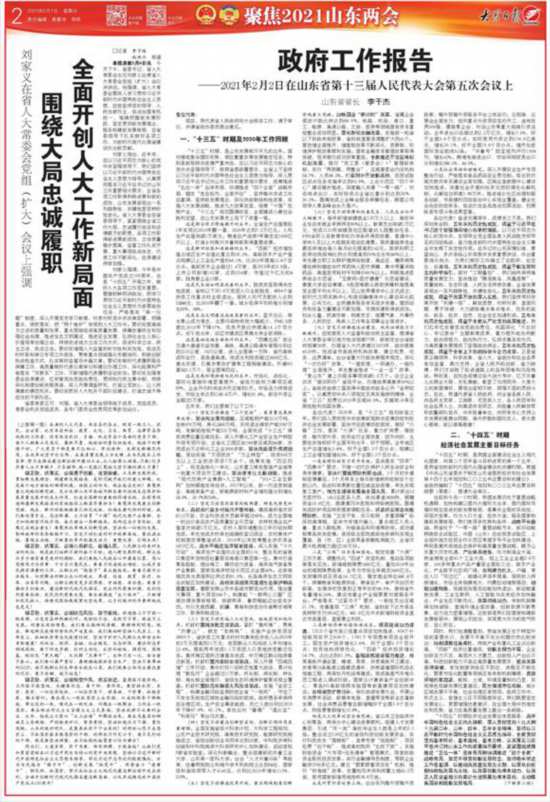 “十四五”時(shí)期,是我國全面建設(shè)社會(huì)主義現(xiàn)代化國家、向第二個(gè)百年奮斗目標(biāo)進(jìn)軍的第一個(gè)五年,是我省加快新時(shí)代現(xiàn)代化強(qiáng)省建設(shè)的關(guān)鍵時(shí)期。根據(jù)《中共山東省委關(guān)于制定山東省國民經(jīng)濟(jì)和社會(huì)發(fā)展第十四個(gè)五年規(guī)劃和二〇三五年遠(yuǎn)景目標(biāo)的建議》,省政府編制了“十四五”規(guī)劃和二〇三五年遠(yuǎn)景目標(biāo)綱要(草案),提請(qǐng)大會(huì)審議。