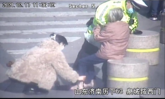 記者了解到,呂瑋是歷下區(qū)交警大隊(duì)泉城路中隊(duì)一名有著9年工作經(jīng)歷的輔警班長(zhǎng),幾乎年年都被評(píng)為優(yōu)秀輔警!按蠹疫^獎(jiǎng)了,我只是做了應(yīng)該做的事。”面對(duì)記者的采訪,36歲的呂瑋靦腆地說,“老人家住在解放橋附近,因小腦萎縮,出門后迷了路。這兩天濟(jì)南特別冷,大過年的別把老人凍壞了,誰家都會(huì)有老人,在我眼里這位老人就是我的長(zhǎng)輩、親人。所以,看到衣服裹不嚴(yán)她的腿,加上她沒穿襪子,我就不自覺地半跪下抱住了她的腿,把她的腳捂起來……”