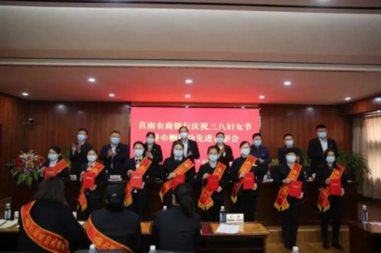莒南農(nóng)商銀行工會(huì)聯(lián)合縣婦聯(lián)召開(kāi)慶祝三八婦女節(jié)暨“巾幗建功”先進(jìn)表彰會(huì)議,共同慶祝三八國(guó)際勞動(dòng)?jì)D女節(jié)。對(duì)全行6個(gè)“巾幗建功”先進(jìn)集體和16名先進(jìn)個(gè)人代表進(jìn)行了現(xiàn)場(chǎng)頒獎(jiǎng)。3位“巾幗建功”先進(jìn)個(gè)人分別代表不同崗位作了典型發(fā)言,充分展現(xiàn)了農(nóng)商銀行女職工愛(ài)崗敬業(yè)、擔(dān)當(dāng)作為的良好精神風(fēng)貌。