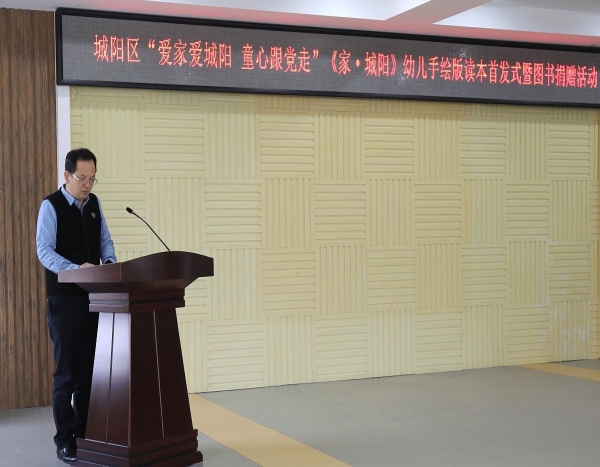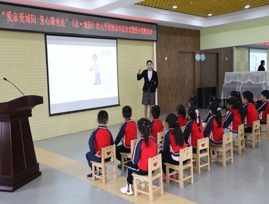 “愛家愛城陽 童心跟黨走”《家·城陽》幼兒手繪版讀本贈書儀式現(xiàn)場。