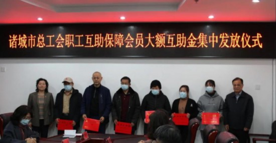 人民網(wǎng)濰坊3月30日電3月23日上午,諸城市總工會在黨員活動室舉行2021年第一批職工互助保障大額互助金集中發(fā)放儀式。來自基層一線的6名職工領(lǐng)到互助金9.75萬元,其中昌城鎮(zhèn)一位王姓職工獲互助金3萬元。