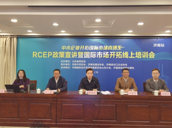 3月19日上午,由山東省貿(mào)促會主辦,濟(jì)南市貿(mào)促會、濟(jì)南流通業(yè)協(xié)會、濟(jì)南市出口企業(yè)協(xié)會共同承辦的“RCEP政策宣講暨國際市場開拓線上培訓(xùn)會”成功舉辦。