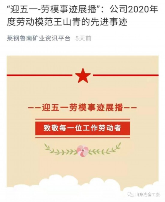 萊鋼集團(tuán)魯南礦業(yè)有限公司開(kāi)展“迎五一——?jiǎng)谀J论E展播”活動(dòng),動(dòng)員職工發(fā)揚(yáng)勞模精神,為企業(yè)高質(zhì)量發(fā)展貢獻(xiàn)智慧和力量。