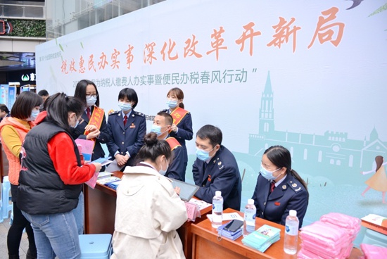 在便民辦稅春風(fēng)行動中“乘風(fēng)而動”,組織開展稅收政策“云宣講”活動,采取“現(xiàn)場沙龍+線上直播”的方式,邀請中小微企業(yè)代表齊聚“云端”,講政策、答疑問、送服務(wù),全力當(dāng)好助力企業(yè)發(fā)展的“店小二”和“服務(wù)員”,讓便民春風(fēng)吹進(jìn)納稅人和繳費人心中。