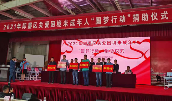 人民網(wǎng)青島5月31日電 “六一”國際兒童節(jié)前夕,山東省青島市即墨區(qū)關(guān)愛困境未成年人“圓夢行動(dòng)”捐助儀式在金口鎮(zhèn)舉行。