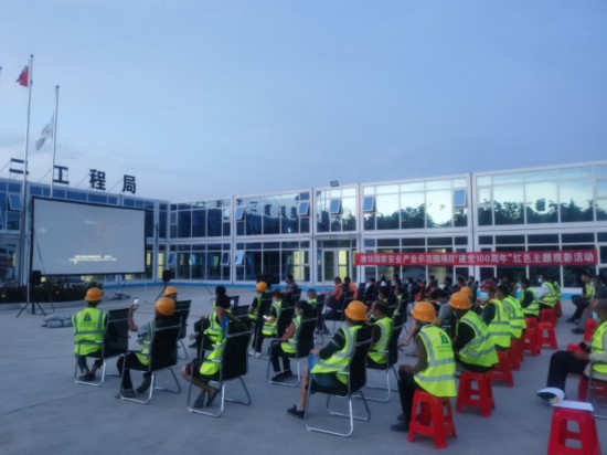 人民網(wǎng)濟南6月8日電 近日,中建二局山東分公司濰坊國家安全產(chǎn)業(yè)示范園項目工會支會組織開展了“建黨100周年”紅色主題觀影活動。建設單位、項目管理單位、監(jiān)理單位、項目部以及各分包單位施工人員均出席了活動,共計100余人觀看了影片《我和我的祖國》。