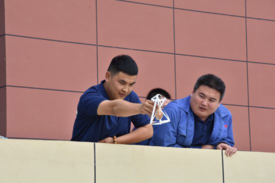 學員們根據(jù)分組情況自主選出了組長后,依據(jù)“游戲規(guī)則”制定創(chuàng)新方案!翱芍谱饕粋包裝袋,塞上填充物,緩沖對雞蛋的沖擊力。”“制作一個‘降落傘’,對沖雞蛋下墜力量!薄叭亲罘(wěn)定,制作三角形‘雞蛋保護器’!贝蠹夷阋谎、我一語,邊講解,邊比劃,思考、討論、創(chuàng)新、動手操作,現(xiàn)場氣氛十分熱烈。
