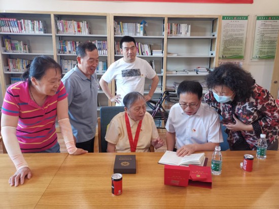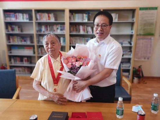 人民網(wǎng)濟南6月30日電 6月22日,濟南市天橋區(qū)總工會黨組書記、常務(wù)副主席馬立世一行5人,為工會離休黨員袁訓(xùn)儀,退休黨員酈覺初頒發(fā)“光榮在黨50年”紀念章,并送去慰問品。