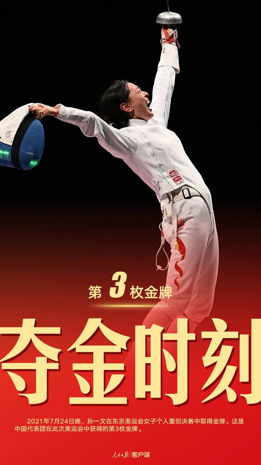 7月24日晚,東京奧運會女子重劍個人賽,中國選手孫一文擊敗波佩斯庫,奪得冠軍。這是中國奧運代表團的第三金,也是山東選手在本屆奧運會上奪得的首枚金牌。