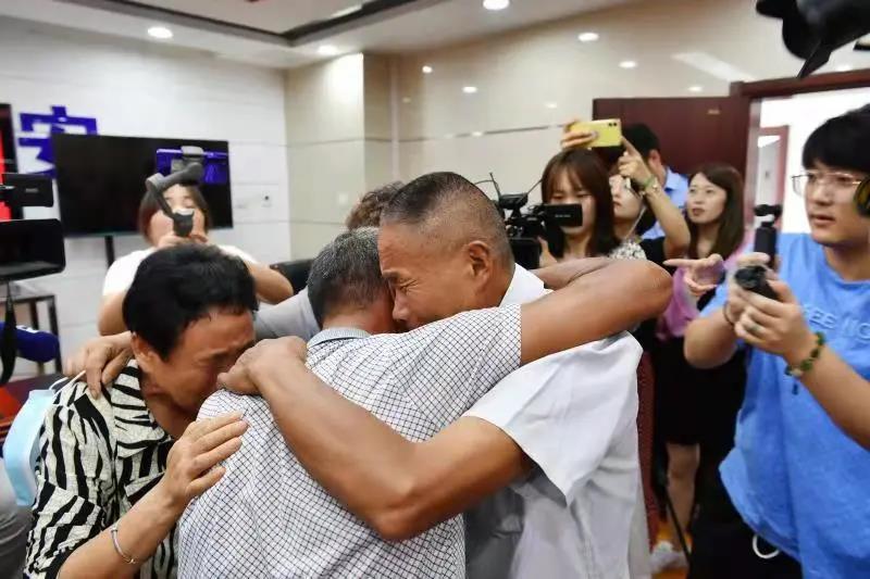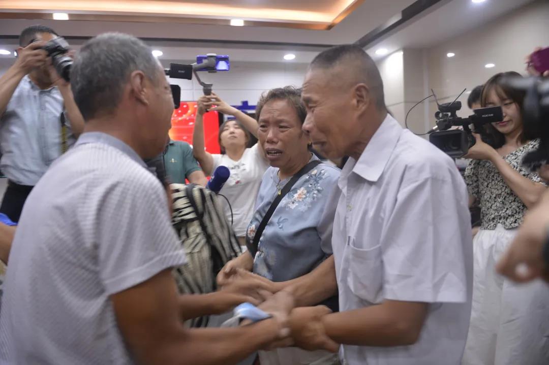 隨后,72歲的張海泉帶著兩個妹妹、妻子、兒子、女兒、兒媳、孫子、孫女走進會場。兄弟倆一相見就緊緊地抱在了一起,連同家人們,哭成一群淚人。