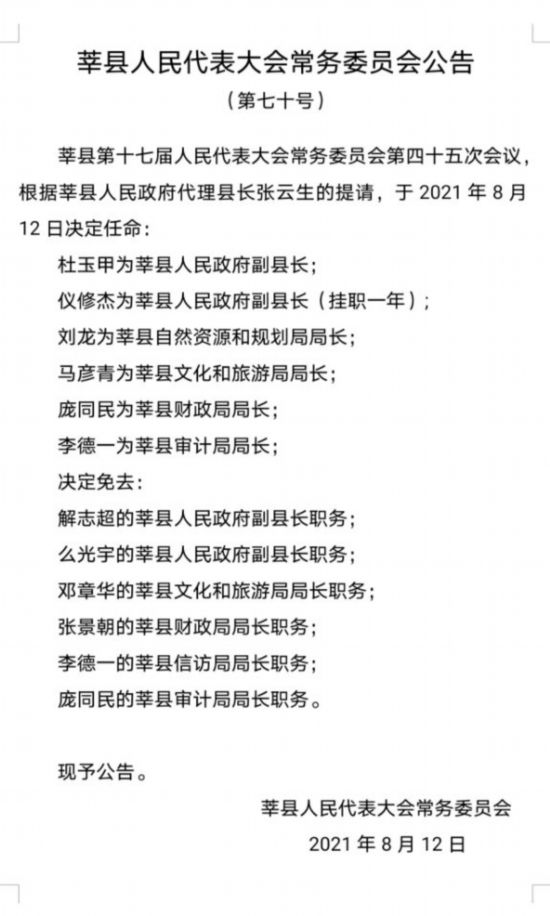 近日,莘縣、高唐縣人大常委會(huì)發(fā)布人事公告。