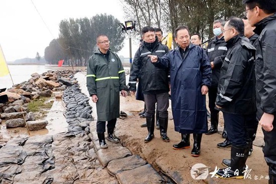 他強(qiáng)調(diào),做好黃河防汛工作,事關(guān)人民群眾生命財產(chǎn)安全,事關(guān)黃河流域生態(tài)保護(hù)和高質(zhì)量發(fā)展。各級各部門要強(qiáng)化責(zé)任擔(dān)當(dāng),做到守土有責(zé)、守土負(fù)責(zé)、守土盡責(zé),以實(shí)際行動筑牢防汛安全屏障。要加強(qiáng)黃河水情測報,強(qiáng)化會商研判,做到科學(xué)預(yù)測、及早預(yù)報、提前預(yù)警,為防汛抗洪搶險提供信息保障。要加強(qiáng)堤壩巡查防護(hù)力度,堅持晝夜巡查,嚴(yán)密排查隱患,扎實(shí)做好重點(diǎn)區(qū)域和薄弱環(huán)節(jié)的防御工作,及時加固薄弱堤壩,確保黃河山東段不出問題、不垮壩。要做好應(yīng)急搶險準(zhǔn)備,預(yù)置搶險力量、物料和設(shè)備,一旦出現(xiàn)險情,迅即投入抗洪搶險工作。要進(jìn)一步完善防洪應(yīng)急預(yù)案,把預(yù)案做精、做細(xì)、做實(shí),做成真正可操作的預(yù)案。要增強(qiáng)憂患意識,著眼防大汛、抗大洪、搶大險、救大災(zāi),提高設(shè)防標(biāo)準(zhǔn),完善防洪體系,確保黃河安瀾。