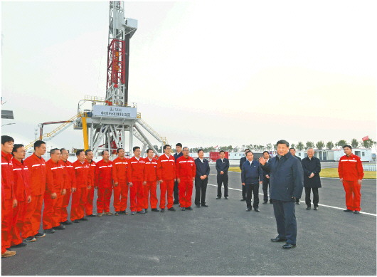 10月21日下午,習(xí)近平總書記來到勝利油田。他指出,石油戰(zhàn)線始終是共和國改革發(fā)展的一面旗幟,要繼續(xù)舉好這面旗幟,在確保國家能源安全、保障經(jīng)濟(jì)社會(huì)發(fā)展上再立新功、再創(chuàng)佳績。
