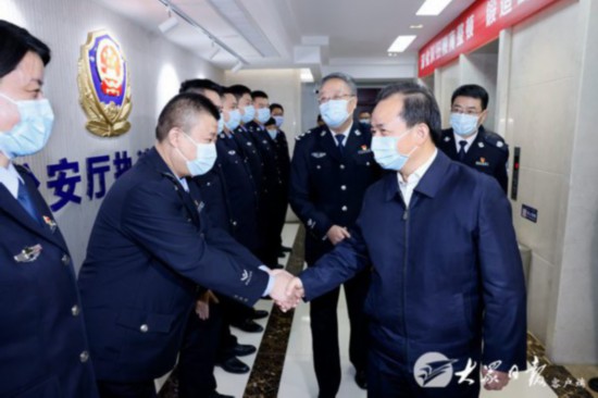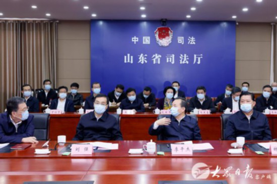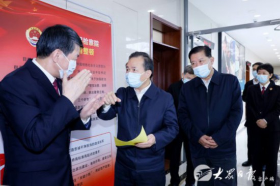 調(diào)研督導(dǎo)中,李干杰詳細(xì)了解各單位教育整頓工作開展情況。在省委政法委,調(diào)研省掃黑辦、省教育整頓辦綜合協(xié)調(diào)組,聽取有關(guān)情況匯報(bào)。在省公安廳,了解公安機(jī)關(guān)執(zhí)法類頑瘴痼疾整治情況,察看全省民生警務(wù)平臺(tái)、大情報(bào)平臺(tái)。在省法院,了解全省法院工作情況,察看第二十二審判法庭。在省檢察院,察看12309檢察服務(wù)中心、案件管理大廳,觀看智慧檢務(wù)工作演示。在省司法廳,調(diào)度檢查全省監(jiān)所疫情防控工作,了解司法工作服務(wù)法治山東建設(shè)情況。