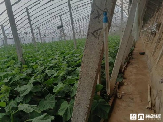 “你看,這是我要給大棚蓋的棉被,一共2層,上面防水,下面保溫。100米的大棚,用30米寬的棉被,大概30床就夠了。”朱師傅的兩個種植大棚位于壽光市,共三畝地,一年種植兩茬菜,今年九月份種植的黃瓜,這兩天剛好是采摘的時候。“蔬菜對溫度特別敏感,得時刻關(guān)注棚內(nèi)的溫度,棉被全部蓋上的話,夜晚和凌晨的溫度能保持在15攝氏度左右,黃瓜就不會被凍壞了!