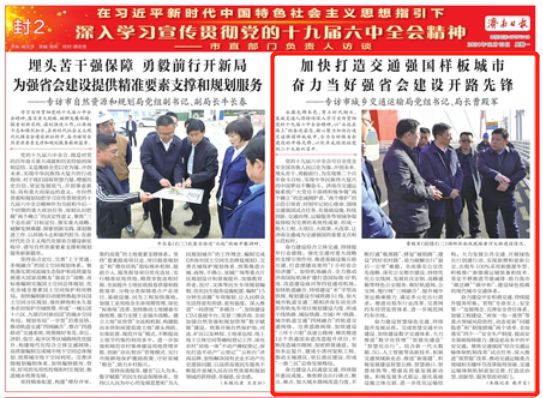 黨的十九屆六中全會號召全黨全軍全國各族人民以史為鑒、開創(chuàng)未來,埋頭苦干、勇毅前行,為實現(xiàn)第二個百年奮斗目標、實現(xiàn)中華民族偉大復(fù)興的中國夢而不懈奮斗。濟南市交通運輸系統(tǒng)廣大黨員干部將積極爭做“兩個確立”的忠誠擁護者、“兩個維護”的示范引領(lǐng)者,時刻牢記初心使命,圍繞交通強國試點任務(wù),在基礎(chǔ)設(shè)施、科技創(chuàng)新、交通治理、運輸服務(wù)等領(lǐng)域爭取取得較為完善的系統(tǒng)性成果,形成一批大工程、大項目、大政策、大改革,讓濟南交通成為交通強國的重要支點和示范標桿。