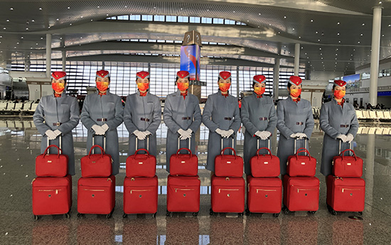 乘務(wù)員服飾融入“牡丹元素”。劉祺攝