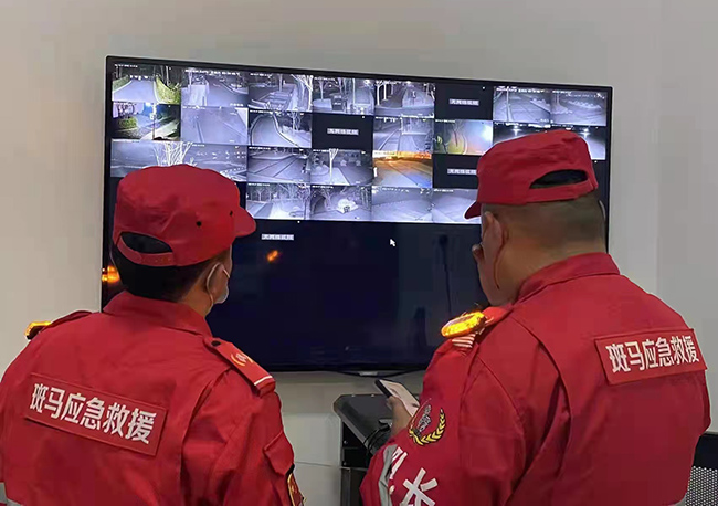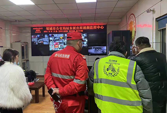 斑馬救援隊員在派出所查看監(jiān)控?酌鲾z