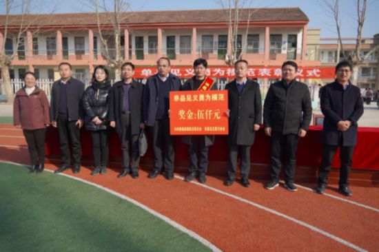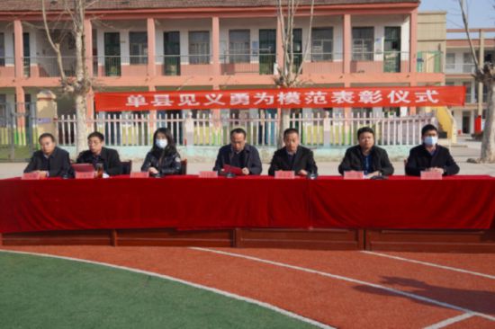 人民網(wǎng)棗莊2月24日電 2月23日,單縣見義勇為模范表彰儀式在單縣高韋莊鎮(zhèn)安韓莊村小學(xué)舉行,勇救落水人員、見義勇為模范王璠磾同志受到表彰。