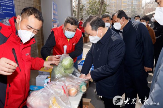 離華實小區(qū)不遠的盛泉小區(qū),因疫情防控需要目前實行封閉管理。社區(qū)居民生活是否有保障?李干杰對此十分關(guān)心。他來到小區(qū)封控入口處,察看新鮮配送的一批水果蔬菜。社區(qū)負責(zé)人介紹,小區(qū)封控后,糧油肉蛋奶果蔬等生活必需品由廠家直供,居民線上點單,廠家線下配貨,再由社區(qū)有序分發(fā)給居民。李干杰說,封控、管控小區(qū)要把服務(wù)保障工作做得再細致周到一些,確保生活物資供應(yīng)充足的同時,及時幫助解決群眾日常生活遇到的就醫(yī)用藥等實際問題。