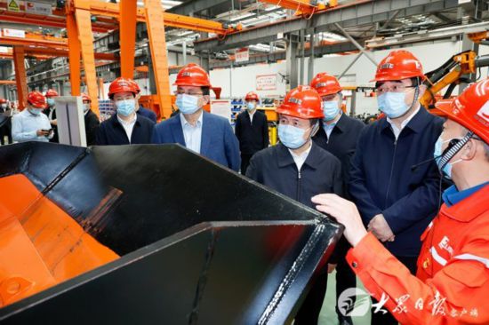 李干杰來(lái)到膠東智慧物流產(chǎn)業(yè)園,通過(guò)視頻系統(tǒng)察看企業(yè)疫情防控情況,強(qiáng)調(diào)要嚴(yán)格落實(shí)國(guó)際郵件快件靜置期規(guī)定,做好消毒消殺,加強(qiáng)員工核酸檢測(cè)和個(gè)人防護(hù),筑牢疫情防控安全防線。在山金重工有限公司,李干杰了解企業(yè)智能采礦設(shè)備生產(chǎn)情況,觀看5G遠(yuǎn)程駕駛鏟運(yùn)車(chē)演示,強(qiáng)調(diào)要統(tǒng)籌發(fā)展和安全,做好安全生產(chǎn)工作,推動(dòng)機(jī)械化換人、自動(dòng)化減人,不斷提高工作效率。在泰和新材料產(chǎn)業(yè)園、萬(wàn)華煙臺(tái)工業(yè)園,李干杰遠(yuǎn)眺項(xiàng)目施工現(xiàn)場(chǎng),叮囑企業(yè)守牢安全生產(chǎn)、生態(tài)環(huán)保、疫情防控底線,加快項(xiàng)目建設(shè),盡快形成實(shí)物工作量。