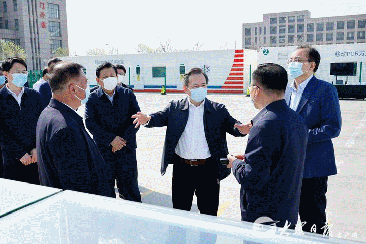 李干杰首先來(lái)到萊州市人民醫(yī)院,了解方艙P(yáng)CR實(shí)驗(yàn)室、移動(dòng)采樣車(chē)、移動(dòng)醫(yī)療車(chē)運(yùn)行情況,聽(tīng)取當(dāng)?shù)睾怂釞z測(cè)和醫(yī)院疫情防控匯報(bào)。他說(shuō),核酸檢測(cè)是做好疫情防控的關(guān)鍵一招,要堅(jiān)持平戰(zhàn)結(jié)合,合理配置醫(yī)療資源,不斷提升核酸檢測(cè)能力。要加強(qiáng)公共衛(wèi)生、疾控領(lǐng)域人才建設(shè),配足配齊核酸采樣檢測(cè)人力,確保緊急情況拉得出、用得上。要科學(xué)設(shè)置核酸采樣點(diǎn),方便群眾快速查詢、就近檢測(cè)。在來(lái)牟青年驛站方艙隔離點(diǎn),李干杰認(rèn)真聽(tīng)取煙臺(tái)市疫情防控和隔離點(diǎn)項(xiàng)目匯報(bào),走進(jìn)隔離房間察看設(shè)施環(huán)境,檢查房屋質(zhì)量,對(duì)隔離點(diǎn)的規(guī)劃布置和應(yīng)用智能入住系統(tǒng)做法表示肯定。