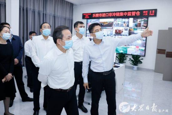 在樂陵市進口高風險非冷鏈集裝箱貨物集中監(jiān)管倉,李干杰聽取常態(tài)化疫情防控“外防輸入”新機制建立工作情況匯報,通過大屏幕察看物品消殺、靜置操作。來到星光糖業(yè)集團,察看企業(yè)實驗室、生產線和產品展示,了解企業(yè)疫情防控和糖業(yè)系列產品開發(fā)生產情況。泰山體育產業(yè)集團是全球頂級賽事供應商、服務商,參與服務奧運會等一系列國內外賽事。李干杰詳細了解企業(yè)發(fā)展歷程和泰山體育(國際)產業(yè)園項目建設情況,察看體育用品、健身器材、體測設備等,勉勵企業(yè)抓住北京冬奧會成功舉辦契機,加快企業(yè)發(fā)展步伐,推動產業(yè)、體育和文化相融合。