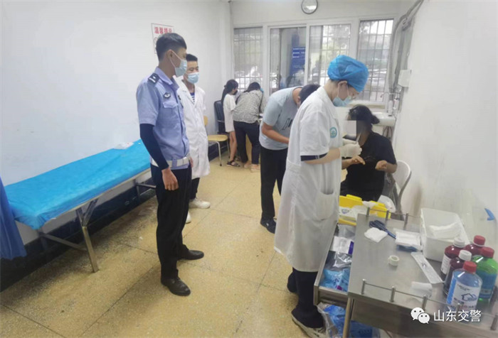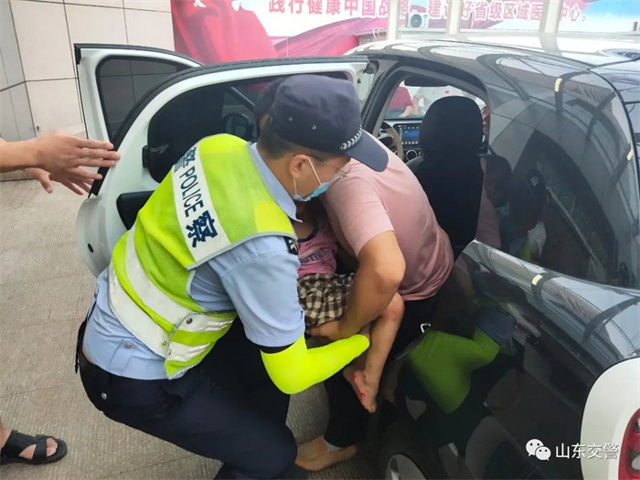8月4日18時(shí),青島市北交警四流南路中隊(duì)交警接到大隊(duì)指揮室通知,有一斷指?jìng)麊T急需到海軍971醫(yī)院就醫(yī)。中隊(duì)兩名警員接到通知后,隨即駕駛警車火速前往。接應(yīng)到該車輛后,警車在前一路鳴笛,警員在車內(nèi)不斷重復(fù)吶喊:“請(qǐng)前面的車讓一讓,車上有一名傷員需要緊急前往醫(yī)院,謝謝大家!”
