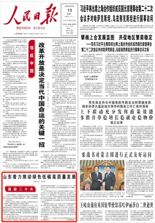 山東是我國重要的工業(yè)基地和北方地區(qū)經(jīng)濟(jì)發(fā)展的戰(zhàn)略支點(diǎn)。黨的二十大即將召開的喜訊傳來,齊魯兒女歡欣鼓舞,鉚足干勁推動(dòng)綠色低碳高質(zhì)量發(fā)展,以實(shí)際行動(dòng)迎接黨的二十大勝利召開。