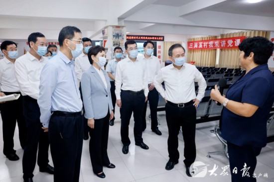 三澗溪村位于章丘區(qū)東部,共有村民3500人,其中黨員144人。2018年6月,習(xí)近平總書(shū)記親臨三澗溪村視察,就做好基層黨建工作提出明確要求。李干杰來(lái)到這里,與村黨委書(shū)記高淑貞深入交流,了解當(dāng)?shù)刎瀼芈鋵?shí)習(xí)近平總書(shū)記重要指示精神情況,詢問(wèn)該村黨員發(fā)展、黨組織生活情況,察看產(chǎn)業(yè)發(fā)展、鄉(xiāng)村治理、移風(fēng)易俗、人才培養(yǎng)等工作成效。他強(qiáng)調(diào),要突出抓好基層黨組織帶頭人隊(duì)伍建設(shè),強(qiáng)化基層黨員干部管理和培訓(xùn),以黨建引領(lǐng)鄉(xiāng)村全面振興。要深入了解群眾所思所想所盼,把黨的好政策轉(zhuǎn)化為為民造福的實(shí)際行動(dòng),務(wù)求取得實(shí)實(shí)在在的成效,讓村民的日子一天比一天好。