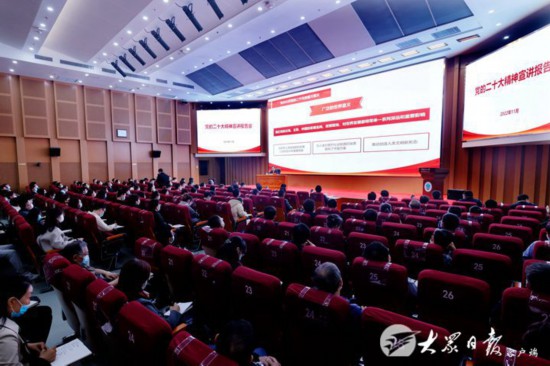 李干杰在宣講時(shí)說,黨的二十大在我們黨和國家歷史上具有極其重大的里程碑意義,學(xué)習(xí)宣傳貫徹黨的二十大精神是當(dāng)前和今后一個(gè)時(shí)期的首要政治任務(wù)。我們要充分認(rèn)識黨的二十大的重大的政治意義、深遠(yuǎn)的歷史意義、重要的實(shí)踐意義和廣泛的世界意義。要深刻領(lǐng)會黨的二十大精神的豐富內(nèi)涵,按照中央“九個(gè)深刻領(lǐng)會”要求,牢牢把握過去5年工作和新時(shí)代10年偉大變革的重大意義,牢牢把握習(xí)近平新時(shí)代中國特色社會主義思想的世界觀和方法論,牢牢把握以中國式現(xiàn)代化推進(jìn)中華民族偉大復(fù)興的使命任務(wù),牢牢把握以偉大自我革命引領(lǐng)偉大社會革命的重要要求,牢牢把握團(tuán)結(jié)奮斗的時(shí)代要求,結(jié)合新時(shí)代社會主義現(xiàn)代化強(qiáng)省建設(shè)實(shí)踐,深入領(lǐng)會黨的二十大的核心要義和精神實(shí)質(zhì)。