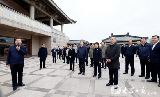 中央第九指導(dǎo)組組長(zhǎng)胡澤君和省領(lǐng)導(dǎo)林武、周乃翔、葛慧君、陸治原、楊東奇、夏紅民、白玉剛、王宇燕、劉強(qiáng)、曾贊榮、李猛、張海波一行,首先來到濟(jì)寧政德教育干部學(xué)院現(xiàn)場(chǎng)教學(xué)基地——孔子研究院,詳細(xì)了解孔子生平,了解儒家思想發(fā)展脈絡(luò)及其對(duì)中華文化的深遠(yuǎn)影響,用心感悟厚重的文化底蘊(yùn),從優(yōu)秀傳統(tǒng)文化中涵養(yǎng)干部為政之德,汲取向上向善的力量。大家表示,要更加堅(jiān)定文化自信,推動(dòng)中華優(yōu)秀傳統(tǒng)文化創(chuàng)造性轉(zhuǎn)化、創(chuàng)新性發(fā)展,自覺做習(xí)近平新時(shí)代中國(guó)特色社會(huì)主義思想的堅(jiān)定信仰者和實(shí)踐者,做中華優(yōu)秀傳統(tǒng)文化的忠實(shí)傳承者和弘揚(yáng)者。