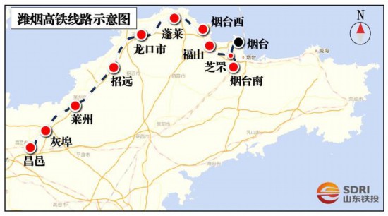 由山東鐵投濰煙高鐵公司投資建設(shè)、中鐵一局承攬全線鋪軌施工任務(wù)的濰煙高鐵,于2020年12月正式開工建設(shè),正線全長(zhǎng)237.3公里,其中正線路基70.344公里,橋梁87座158.53公里,雙線隧道8座8.44公里。線路由濰萊高鐵昌邑站引出,經(jīng)濰坊昌邑市、青島平度市、煙臺(tái)萊州市、招遠(yuǎn)市、龍口市、蓬萊區(qū)、煙臺(tái)經(jīng)濟(jì)技術(shù)開發(fā)區(qū)、福山區(qū)、芝罘區(qū),接入青煙直通線芝罘站。全線設(shè)昌邑站(既有)、灰埠站(原設(shè)計(jì)平度新河站)、萊州站、招遠(yuǎn)站、龍口市站(既有)、蓬萊市站(既有)、煙臺(tái)西站(原設(shè)計(jì)大季家站)、福山南站、芝罘站(既有)等9座車站,并通過(guò)劉家線路所、蓁山線路所連通煙臺(tái)南站和煙臺(tái)站,線路設(shè)計(jì)時(shí)速350公里。