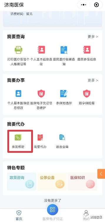 1.微信或支付寶搜索“濟南醫(yī)?!毙〕绦虿⒌卿洝J醉摬檎摇拔乙k”點擊親友綁定。