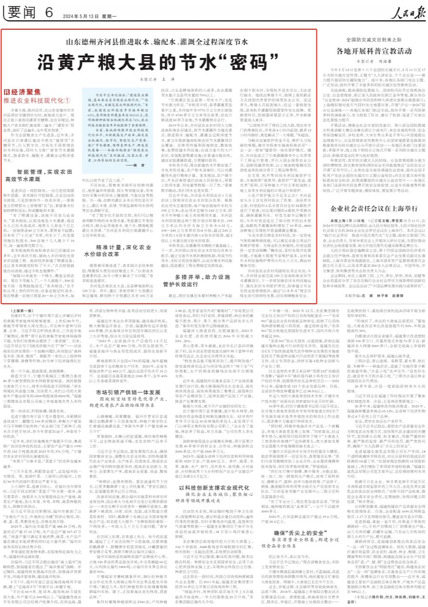 人民日報(bào)聚焦德州齊河縣:沿黃產(chǎn)糧大縣的節(jié)水“密碼”